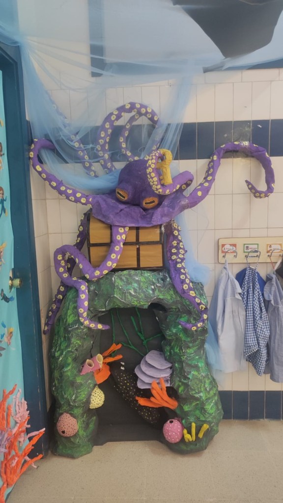 At the end of the month I helped volunteer at for Mason’s class creating under the sea creatures for his class unit! It was fun meeting other moms and struggling through my Spanish 😅