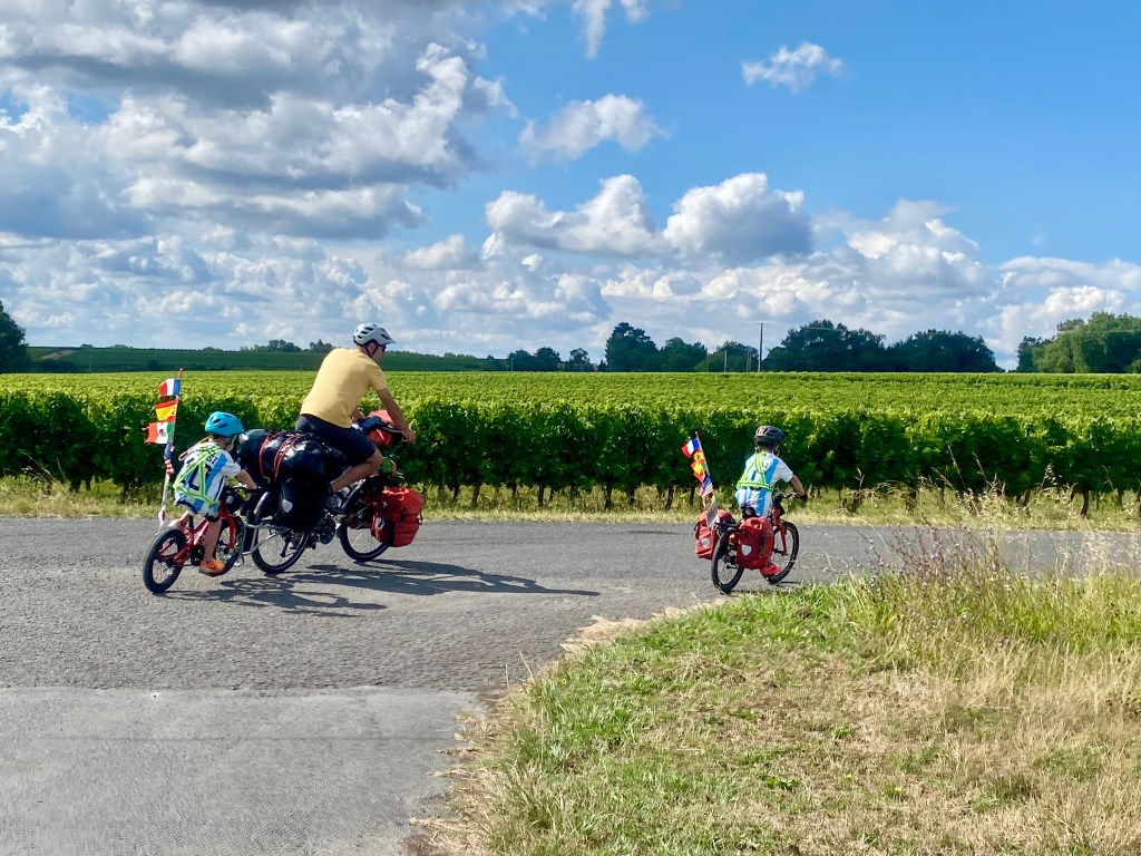 On July 22, we started our own Tour de France in Bordeaux and followed the coast north along the Euro Velo 1 route. We quickly learned why most riders cycled south along the coast, as we were constantly battling headwinds. But when the temperature climbed it was nice to be near the water and with lots of campgrounds, the kids were happy playing and swimming.