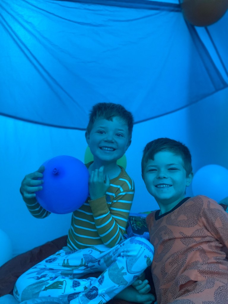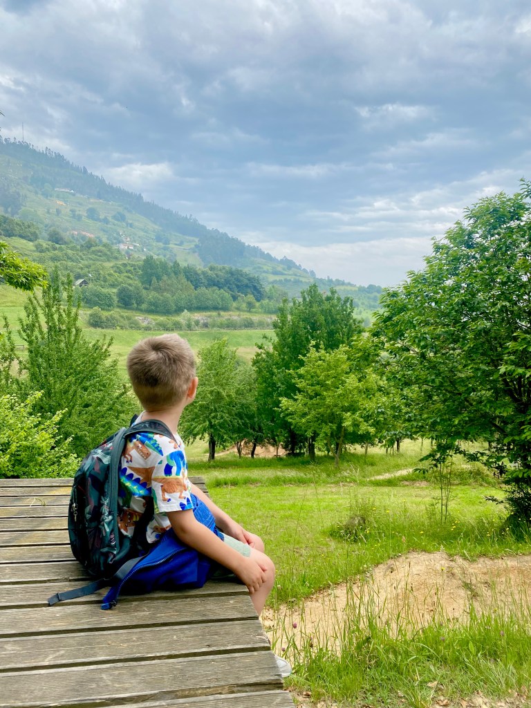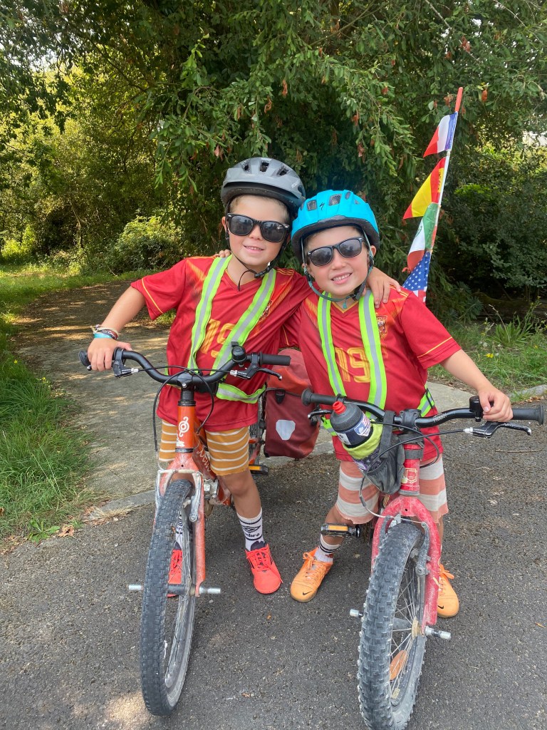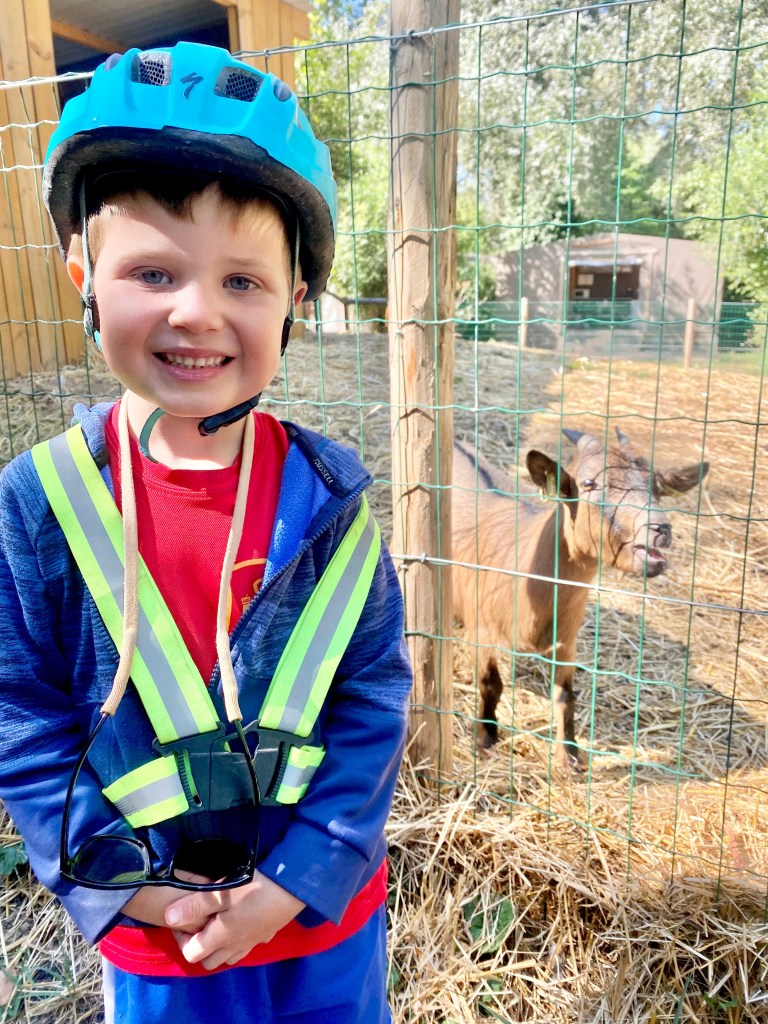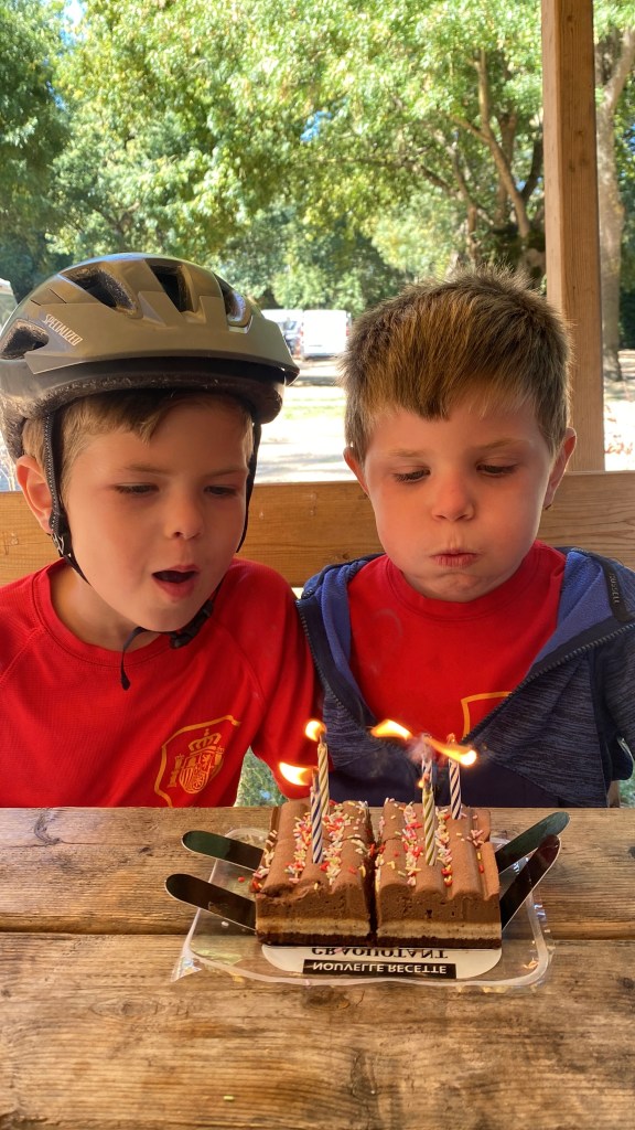 We also celebrated Mason’s fifth birthday while riding on the road! He woke up to a tent filled with balloons and a scavenger hunt waiting for him. We had cake for breakfast, which was an absolute treat and he loved it. We even tied balloons to his bicycle so he could feel extra special all day long. We made sure our campground had animals and a pool so he could enjoy all his favorite things. It was a simple and joyful birthday, full of adventure and smiles.