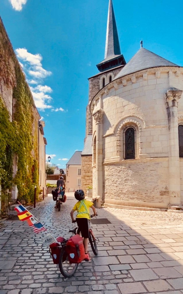 Eventually we hit Nantes and decided to go inland along the Loire River valley and the Euro Velo 6 route. We had enjoyed the coast but we wanted to get away from all the holiday tourism and enjoy some quieter cycling along the river and canals. It was here that Mason started cycling solo for longer stretches. We loved seeing his stoic pride, new found freedom, and cycling confidence.